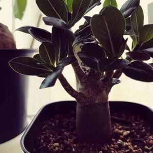 我が家のちびっこアデニウムちゃん😁 8月にお迎えしてから 早いもので3ヶ月が経ちました。 当時後ろに刺してあるタグが スケスケに見えてたのに、 今じゃ全然見えません👀 幹もだいぶ太くなりました😊💕 葉っぱも少し変色したけど、 まだまだ落ちる気配は無し。 この子は休眠しない気がする…😅 春になったら植え替えかな😁