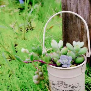 ちびっこ達で寄植えしました💕⁾⁾ 雨が止んでる間に撮影📸 これから盛り上がる予定です^^; 地植えのセダムも元気です🌿♬ 実家の母からきゅうりの佃煮作ったから取りにおいで〜と連絡が来たので行って来ます🚙₃₃₃