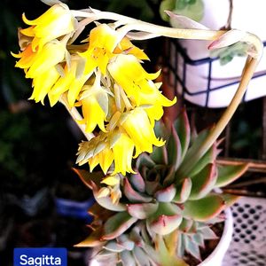 こんにちは👋😃 エケベリアの開花、第2号は、 Sagitta(サギッタ)でした🌼 黄色花💛が先行しているのは、たまたまでしょう🎶😃