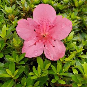 我が家にある最後のサツキ(ツツジ?) やっと咲きました💕 蕾も見えないし枯らしてしまったのかと思ってました。雨上がりで瑞々しくて眩しいです。🌟