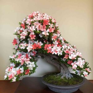 ✿*:・゚サツキの盆栽゚・*:.。❁ 盆栽には詳しくないのですが、こんなにキレイな姿に仕立てるのには、日頃のお手入れが大変でしょうね(≖︿≖ە) 🏷oriの自由なピンクの日 参加させていただきます💗💕💞 (Memories albumより)