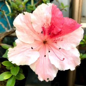 サツキ盆栽 晃山の花です 未だ一輪しか咲いていませんが、優しい色合いの花なので写真🤳に撮りました。