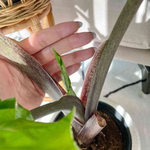 ☑︎2023/06/01 アロカシアローライダー調子よき✨ 1週間前に新芽ひらいたばっかりやのにまた新芽でよる!!😳💚 やばー💛すき!!🩷