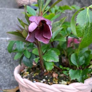クリスマスローズさんの一番乗りはローズピンクの八重の花🌼 去年は咲かなかったけど今年は玄関前に植え替えてみました😆🎶