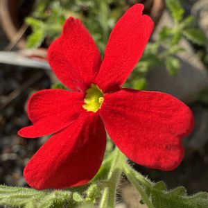 サンブリテニア スカーレット。.:✤*゜❤ ピョンピョン伸びてもりもりにならず ✂️してもやっぱりピョンピョン🤣 なかなか気難しい子です😂 いっぱい咲いたらupしようと思ってたけど、これが限界みたいです😂💦 PWさんの育て方ページを見たら、 どうもこの子は上級者向けらしい😱💦