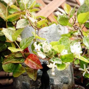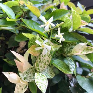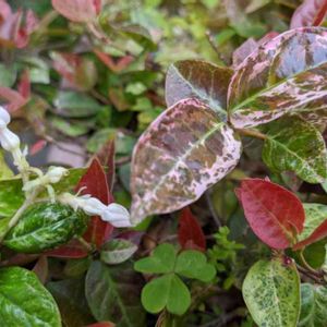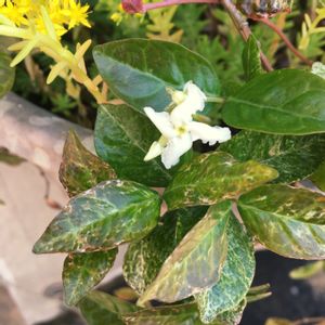 コンバンハ(´,,•ω•,,)ノ))☆☆.•*¨*•.¸¸♬ 錦の日 参加させていただきます♬︎♡ ハツユキカズラがテイカカズラの 斑入り品種だと最近知りました(∩´∀`∩)💕 小さい白い花が咲いています♬︎♡