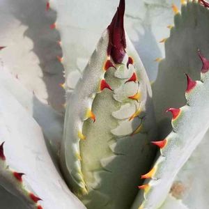 アガベ ピグマエア “ ドラゴントゥース ” ずっと欲しくて手の届く子を探してて、 ようやくお迎えする事が出来ました✨ 肉厚の青灰色の葉っぱに、 整然と生え揃う赤い棘・・・ 久々にキタ〜♡ ♪───O(≧∇≦)O────♪ ずーっと見てられるヤツだっ❗️