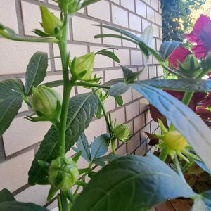 家の近くのお花の先生のお庭に ローゼルの花が咲いていましたꔛꕤ*。 下のローゼルは 白い実ができるのでしょうか…? 別名 ロゼリ草 ローゼリ草 レモネードブッシュ ローゼルには ビタミン・ミネラル類や アントシアニン色素・ペクチンなどが たっぷりなんだとか〜 ローゼルティー飲んでみたいです🫖🍷