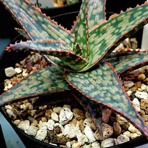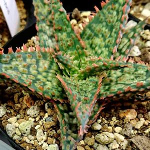 アロエ プラテンシスの交配種。 恐らく帝王波。 最初エイリアンかと思ったし、好みのネーミングとしてはエイリアンであって欲しかったが、葉の模様が違った。調べていくうちに帝王波が一番近かった。 どちらにしても情報が少ない品種だった。 22日からアロエネタが続いている( ^_^ ;)