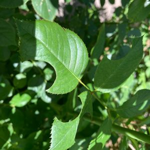 こんにちは ☀️ 今日のお花がハギだったんですね~😄 昨日も出したけど、今日も出しちゃおう!😁 萩の葉っぱが丸くきれいに切り取られています。 これはハキリバチの仕業ではないかと思うのですが。🤔 ネットで調べると萩の葉を切り取って持って行くハキリバチの種類もありました。 葉っぱを切り取ったり、抱えて飛んで行く姿は見たことがありません。 一度見たいものです~😊🎶 ハリキリバチじゃないですよ、ハキリバチですよ~🤣💦