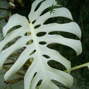 植物園の通路にて 肋骨のような白いモンステラ 、とても大きいモンステラの株で真っ白なのはこれ1枚だけでした。斑入りの種類なんですかね😃