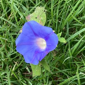 🏷ストロングビューティ こぺんちゃん発案 ど根性で美しい子の🏷 可愛い朝顔💙 芝の中から一輪開花💙