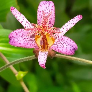 今日のお花 ホトトギス お隣のブロック塀から ド根性で我が家へお出まし✨ こぺんちゃんの🏷ストロングビューティーに初参加します ユカリさんの🏷2022秋の十草に4つ目Entryします🥀