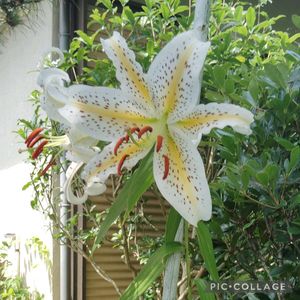 我が家のヤマユリが咲きました 3~4年前24輪咲いて 球根が分球 どういうわけかわかりませんが 同じ場所にはでなくて とんでもないところに 出てきます この子は門柱の近くにでてきました 特別邪魔でない限り 出て来た所を尊重して その場所で咲いてもらいます 自然の香りは素晴らしいです ① ② ヤマユリ ③ キョウチクトウ ストロングビューティーです ④ パンジーちゃん まだ元気だぴょ〜ん😁😸 ⑤ ナツフジ