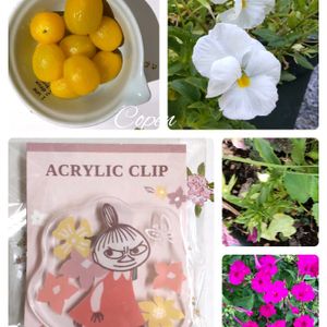 🏷️ムーミンの日 素敵便で戴いたみぃちゃんクリップです🐰🏫 かわいい♪😄💐🥇🎇 🏷️一般ジーの会♪ こんばんは♪ 今日のホワイトちゃんです🐰🏫 気温36度 ガムバッテリー🏫もあるぞ🤩😭😄 中央、、チャーリーブラウンの髪の毛のような葉っぱからも白い蕾だホワイトちゃん😄🥇💐 左上↑ 🐻❄️ちゃんファームのイエロートマト🍅⛷️ こぺんちゃん美味しく戴いたぴょん😄🥇💐🍋🪂 ↓花友さんトコのホウセンカちゃん