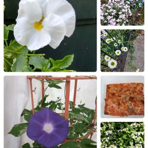 🏷️日曜ビタミンカラー♪ 35度の1日でした🤩🤩💐 夕方出掛けてオシロイバナちゃんです🐰 右中央、、我が家のトマト🍅 左下 コンクリートが友達のキンギョソウちゃん😊🥇☘️ 🏷️ストロングビューティー