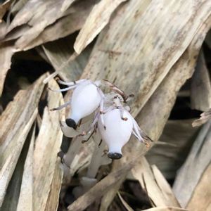 エビネ蘭と同じサツキの下から現れました 本当に真っ白な色をしています 幻想的です