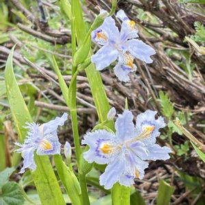 シャガ (射干) アヤメ科 多年草 原産地 中国 日本各地の低地や人里近くの湿地の森林に普通に見られます。 ランナーを伸ばしてどんどん増えて行き、1日花だけど、日毎に咲き変わります。🌱🌱🌸 家の花壇では自由奔放に他の植物を邪魔してます。🌱🌱😥