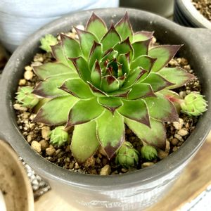 ぱっと見、何の変哲もないセンペルビウム 実は、私の夢が叶いそうです 2枚目をご覧ください 均等にランナーが出始めています やったー🙌 3枚目はランナーがあちこちから出ています