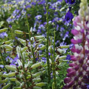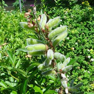 「昇り藤」の異名も持つ、マメ科のルピナス。天に向かって伸びていく見事な花の姿が魅力です。 そのお花は周りにありましたが、この枝豆のような実が面白くて…