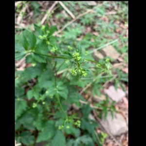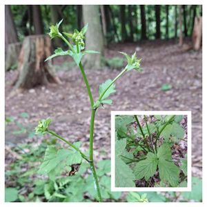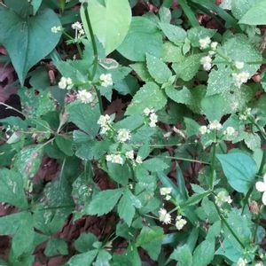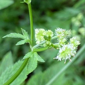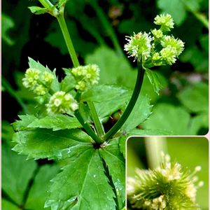 軽井沢の湿った道端にアチコチ咲いています。背丈は大きくて1m位のもあります。花序は1cmないくらい。 葉っぱはわかりにくいのですが、三枚から五枚に裂けていました。 馬のミツバ、と教えて頂きました‼️ 感謝です🎶 両性花と雄花の集合しているそうですが、両性花のほかに何故雄花が必要なんでしょう?なぞです😅