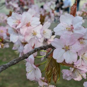 お散歩。 エゾヤマザクラは花と葉が同時に出ます 北海道神宮は梅と桜が一度に楽しめます 少し山に登るとまだまだ桜は楽しめます。