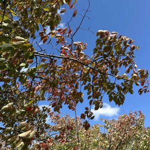 こんばんは😃 お彼岸のお墓参りに行って来ました 秋晴れの空にエゾヤマザクラさんの紅葉した葉っぱが、少し強い風に揺れていました😊