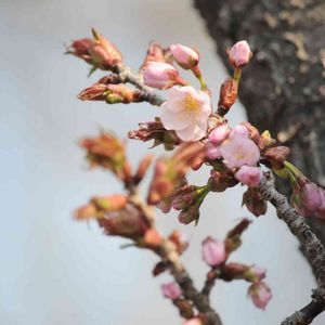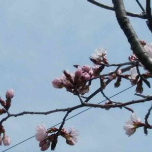 まだまだ蕾ばかりの木が多いですが、この子だけなぜかフェイントで三分咲き(笑)