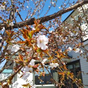 わが家の桜🌸も開花💠 昔、夫が職場の敷地内の桜の子供を、持ち帰り、庭へ🌱 えーっと思ったけど、 初めて花を見た時は💕💕 姿、形はあまり良くなく、間延びして咲いているけれど、 毎年、少しづつ、花増えてます🎶