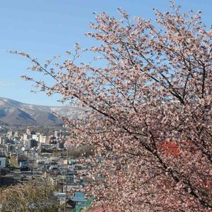 梅と桜の共演(^^) 今年は雪解けが早かったおかげで、例年より一週間ほど早く見頃を迎えています♪
