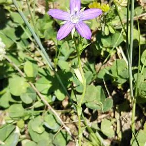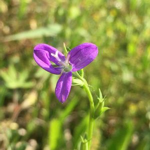 朝ウォーキングで出会ったお花 その(7) マツバウンランと同じくらいの大きさの花で、すぐ近くに咲いてました あなたの名前は? ➡︎ t@buchiさんに「ヒナキキョウソウ」と教えていただきました😃