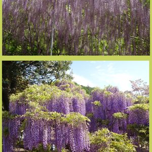 5/21㈰⑤ mimozaさん発信 🏷日曜日は日本を感じる和の花 あしかがフラワーパークの 藤のドームと、普通に植えてある藤の木。これは黒龍かな?神代植物公園で撮った黒龍とよく似ています☺️💟💟💟🌿
