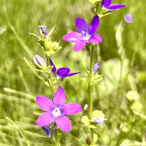 キキョウソウ(桔梗草)🌿💠 別名:ダンダンキキョウ(段々桔梗) キキョウ科キキョウソウ属 小さな桔梗に似た 青紫色の可愛らしい花🌼 花も葉も🌿段になってついているから「段々❕」 花言葉💐 『優しい愛』『人当たりがいい』 🏷美しく土曜日ドヨウ 🏷おしゃれな土曜日♪ 🏷青い山野草マニア