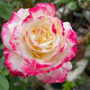 💠バラ💠 ジュピレドュプリンスドゥモナコ 故グレース王妃の夫君である元モナコ公国元首・故レニエ三世大公の即位50周年記念に捧げられました。🇲🇨🌹 米名は"チェリーパフェ"です。2003年AARS.他3賞受賞。 丈夫で良く咲き、赤の出方が色々で楽しいバラです。 マイガーデン💕 🏷月曜日にはバラを に参加させていただきます💕