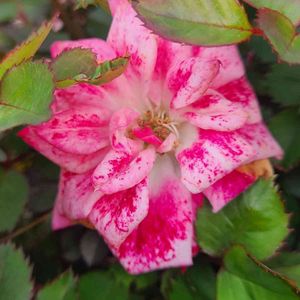 ミニ薔薇「チェリーアイ」 先日製作した鉢棚に置いておいたら、反対側に花が咲いていました。 反対側じゃ見つけられないよ。😅 この子、 色々な咲き方をしてくれますよ🎶