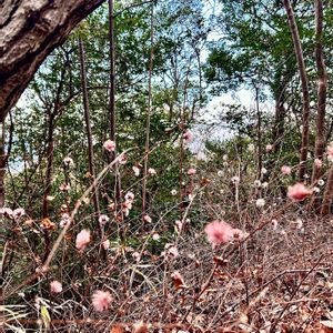 六甲連山東端の行者山東観峰の大阪平野の展望台から戻る尾根でピンクや白のコウヤボウキ(冠毛)が群生していました。 花の無い時季なのに珍しい光景に出会えました。 2023/01/19