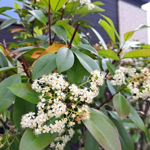 こんにちは🤗 お久しぶりです ベニカナメモチのお花が こんなに咲いたのははじめてです♪