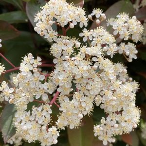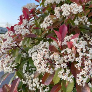 【要黐】《バラ科》 花言葉 「にぎやか」 別名 ソバノキ アカネモチ カナメモチは丈夫な植物です。 この丈夫さを利用して、 昔は扇の要(カナメ)として利用されていました。 そのため、カナメモチという名前になりました。 またアカネモチという名前がなまってカナメモチになったという説もあります。 なぜアカネとついているのかというと、カナメモチの新芽が赤いことからです。 この赤い色はアントシアニン色素が関係しています。 カナメモチに限らず、植物の新芽は柔らかく弱い特徴があります。 そのため、強い日光に当たると、 弱ってしまうことがあります。 カナメモチはバラ科ですが、 バラのような花とは異なります。 どちらかというと梅に似た花でふわふわっとした印象があります。 なるべく弱らないように、アントシアニンを含んで日差しから葉を守っていますす。この赤い色はにはサングラスのようなの役割があります。 レッドロビンという名でも有名。 生垣によく利用される種類で、新芽が赤いことが特徴。 カナメモチとオオカナメモチの交雑種。