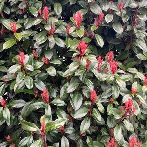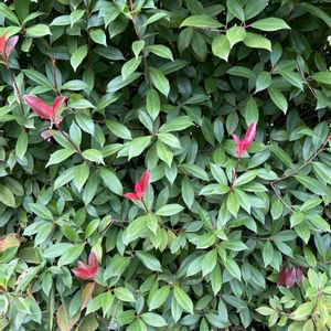 赤いのは新芽の葉っぱのようで 花のように綺麗でした。 ベニカナメモチ と教えて頂きました。