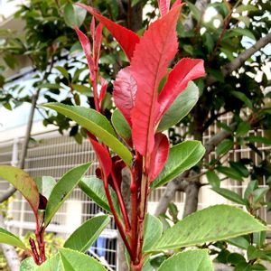 これはなんて名前の木? 昨日出先で見つけました。 新芽?が赤くて初めて見た👀 _________ 追記。 見つけました! 葉っぱが成長すると、赤いまま開くんですね! おもしろい(=^▽^=)