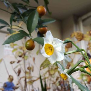 先輩の花壇の水仙も咲いた~💕 そしてバックの金柑👀‼️ 実物はピンポン玉くらい大きくてビックリ🐰🎵