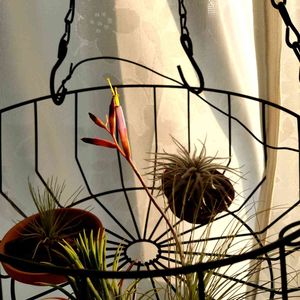 チランジア エアプランツ セリアのワイヤーラックのままベランダ管理へ。 やっぱり外が好きなのね… リビングがさみしくなりました😂