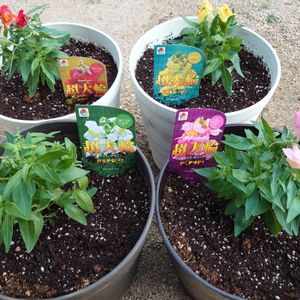 去年は2色育てていたけど 今年は4色育てています🌱 タキイの金魚草超大輪ポップアップ🌸 カワイイ〜💕