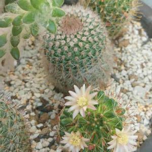 (>.<)暑い💦💦暑い💦💦 まだ夏、始まったばかりだよねf(^_^; 🌵チャンに今度は白い🌸が咲いてたよ~(^-^) 色的に涼しい感じ🎵カナ( *´艸`)