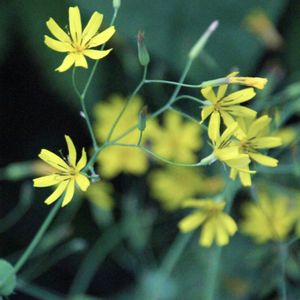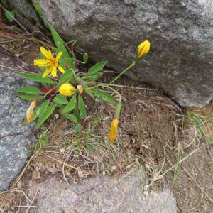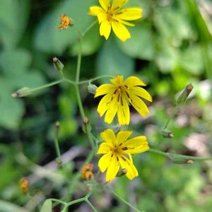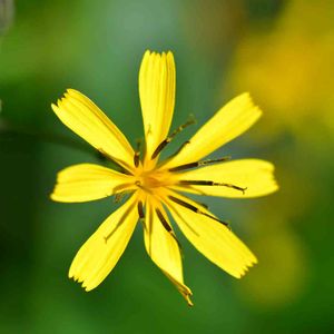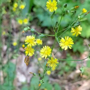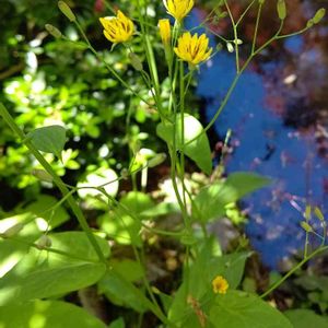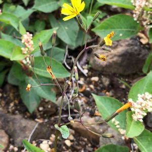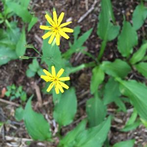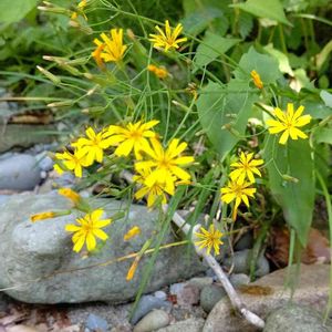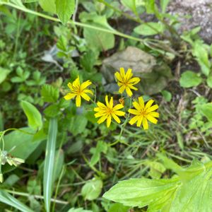花苦菜 はなにがな キク科 ニガナ属 草丈 10〜50cm 花期 6月〜9月 鳥海山では山地帯から偽高山帯に移行するあたり、つまり鉾立の登山口すぐで出会える。 大平登山口から鉾立登山口へ歩いたので、開花した楽しい花々を見ることができました。❤️ 歩き始めは早朝、雨後で花が開いてない事が多い😓 それより高所の偽高山帯〜高山帯のニガナ属をクモマニガナ、タカネニガナ それぞれ、白花がある。 舌状花は7〜11個。多年草。