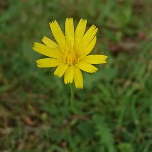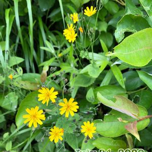 「ハナニガナ(花苦菜)」 ニガナの舌状花は普通5枚、ハナニガナは8〜11枚とある。 この花は7枚に見えるが、許容範囲と思う。 別名:オオバナニガナ 🌺言葉:質素、明るい笑顔の下に悲しみ。 2020.7.24撮影