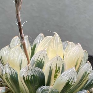 ●ススキノキ科 ツルボラン亜科 ●ハオルチア属 ●オブツーサ錦 臙脂😻😻 おはようございます。🥱🥱🥱🥱 臙脂特有な黒葉な部分の色合いが変化して、グリーン系になってきちゃいました。😅🤣 普通のオブ錦みたいに見える…🤣(笑) 元々グレードの低い株だったので仕方ないですけど、ここまで更に下がるとは…😅 もっと、グリーン系になりそうな勢いです。😮💨😮💨😮💨😮💨 さて、昨夜の台風並みの嵐にはビビりました…🤣 ベランダがバケツの水をひっくり返した様な感じで、ヤバかったです。😅 幸いにも数日前に、手作りのビニールハウスを完成してあったので、植物達は大量の雨水を浴びなくて済みました。☝️🤓ヨカッタ さてと、今日も仕事頑張ろ。🤣