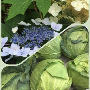 6月は紫陽花ですね。 雨が似合う花はやはり紫陽花ですね。;(´•௰•`)☂ キャベツの収穫がありました。 どれかのキャベツに虫ちゃんがいると思います😱