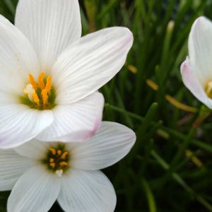①今朝もタマスダレ ②一番初めに開いた花は閉じてしまいました この薄桃色も可愛らしい ③も〰️う少し 🏷️水曜日は白い花♡ 初参加します🙇♀️