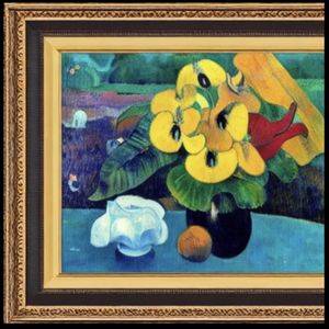 話題のお絵描きばりぐっどくん AI が描いた絵 8K, ポール・ゴーギャン,花を描く,高品質,写実的,油絵, 静物画,木製額付きで全体的に描く